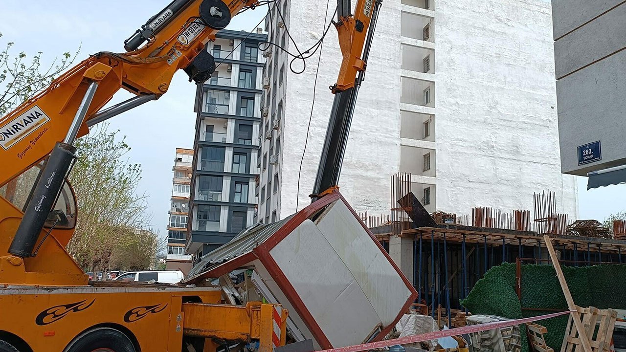 İzmir’in Bayraklı ilçesinde bir inşaatta vincin kırılan taşıma kolu, güvenlik kulübesinin üzerine düştü; 2 işçi yaralandı.